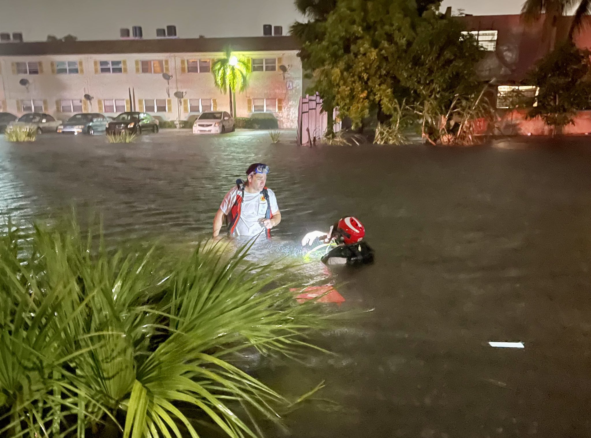 En Lauderhill, Florida, las autoridades respondieron el domingo por la noche a un reporte de un auto que había sido arrastrado hasta un canal. Fotos tomadas por los bomberos en el lugar, unos 48 kilómetros (30 millas) al norte de Miami, mostraban a rescatistas buscando en lo que parecía una inundación cerca de un estacionamiento.