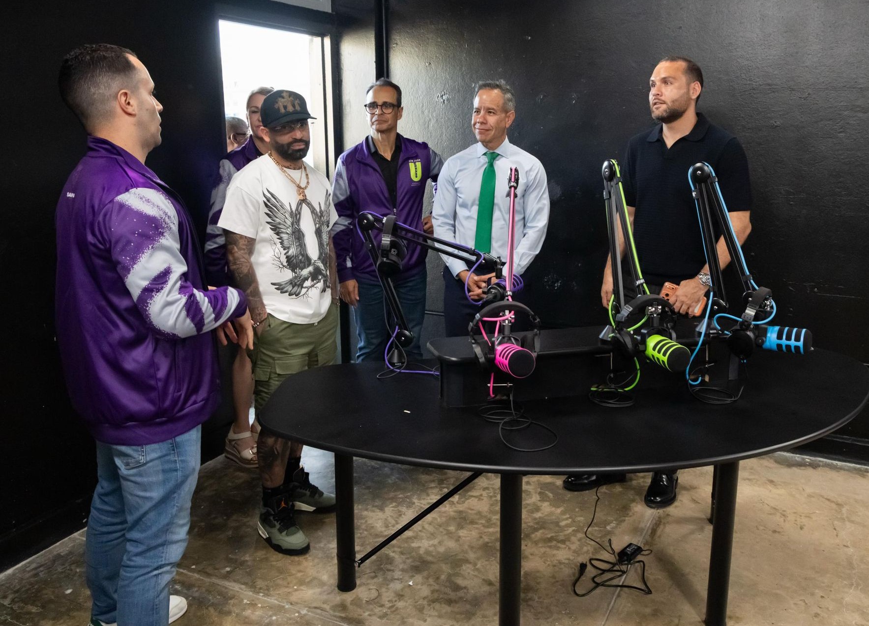 Durante su intervención, el alcalde destacó que Arcángel ha demostrado interés en aportar al país y recordó que el artista fue padrino del estudio ubicado en la Plaza de Río Piedras, un espacio que forma parte de un programa educativo enfocado en el desarrollo creativo y la formación artística de la juventud sanjuanera.
