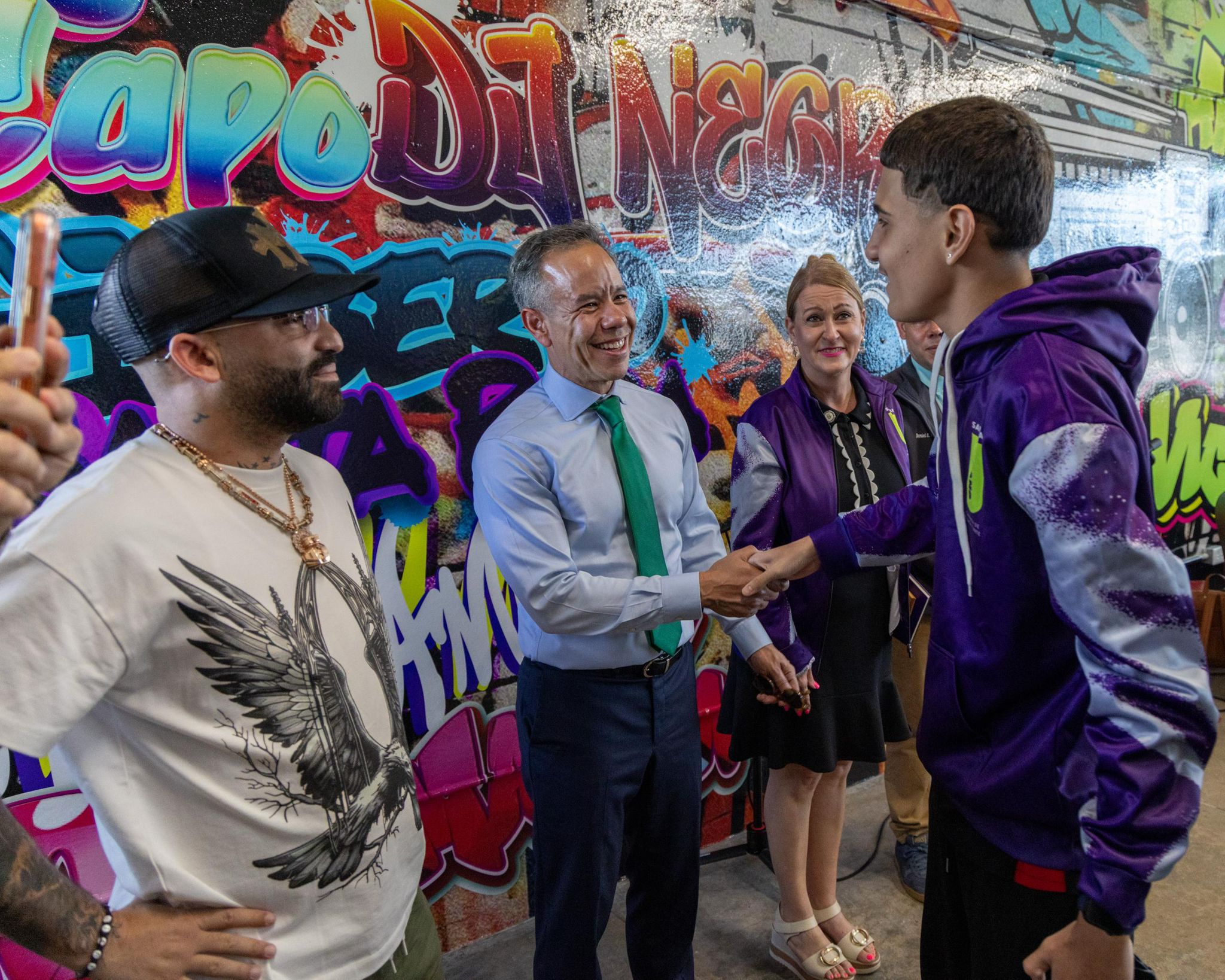 El alcalde de la ciudad capital, Miguel A. Romero Lugo, llegó junto al artista urbano Arcángel a la Escuela Urbana de San Juan en una visita sorpresa realizada el miércoles, llevando un mensaje directo de motivación y disciplina a los estudiantes como parte de las iniciativas municipales dirigidas a conectar la educación con experiencias reales dentro de la industria musical. La visita permitió a los jóvenes compartir de cerca con el artista y conocer cómo el talento, la perseverancia y la preparación pueden abrir oportunidades dentro del ámbito creativo.
