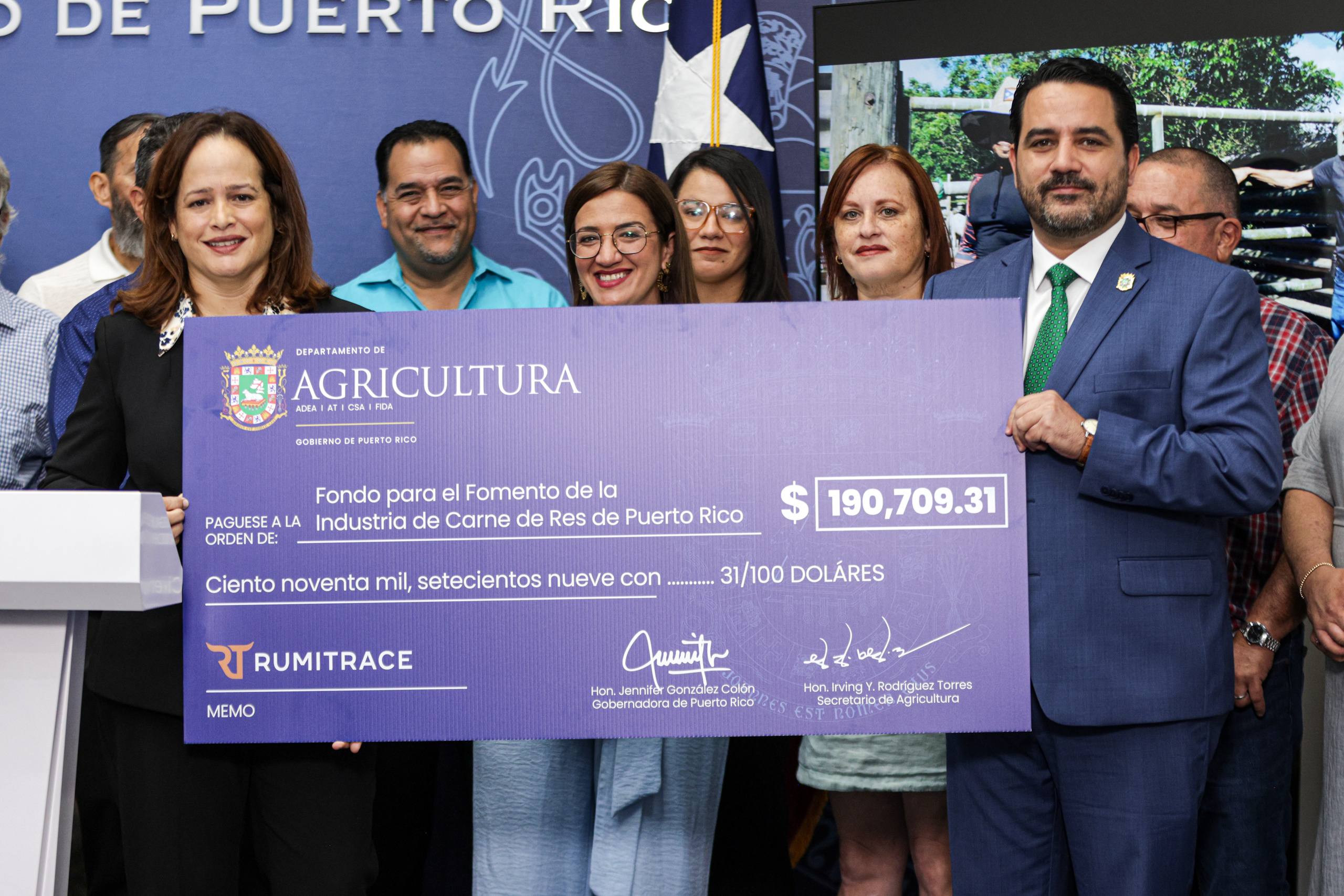Durante el anuncio se formalizó el acuerdo colaborativo entre el Departamento de Agricultura, a través del Fondo de Innovación para el Desarrollo Agrícola (FIDA), y el Fondo para el Fomento de la Industria de Carne de Res, mediante el cual se hizo entrega de un total de $190,709.31 para la implementación del sistema Rumitrace, que además incluirá un componente educativo dirigido al sector ganadero. El Secretario de Agricultura, Agro. Irving Rodríguez Torres, realizó la entrega del cheque, el cual fue recibido por Rosely Hernández, directora ejecutiva del Fondo para el Fomento de la Industria de Carne de Res de Puerto Rico.