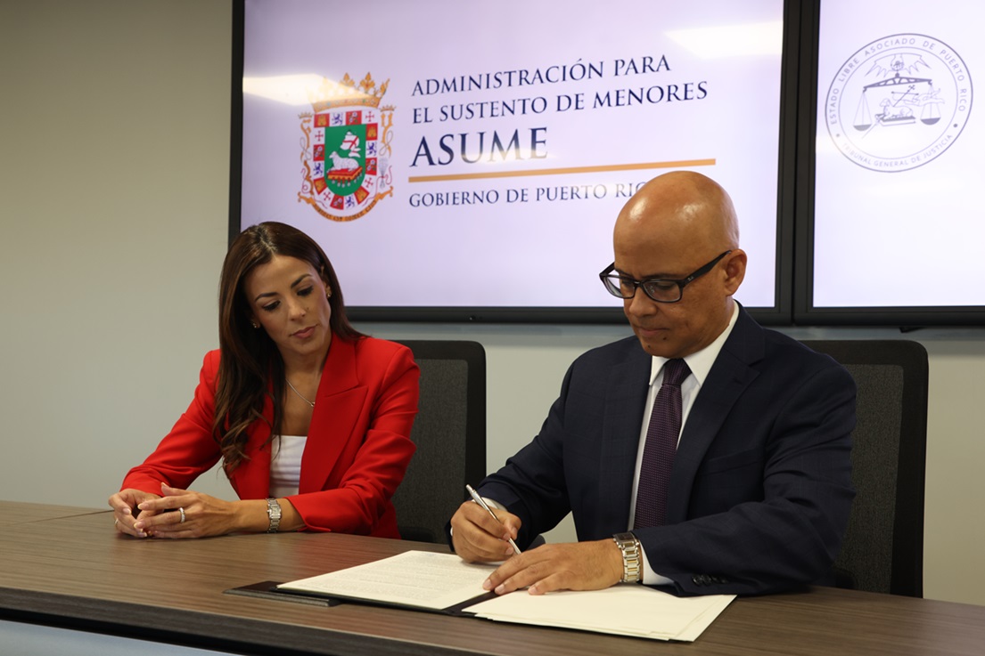 La Administración para el Sustento de Menores (ASUME) y la Oficina de Administración de los Tribunales (OAT) firmaron hoy un acuerdo de colaboración que permitirá a personal autorizado del Poder Judicial acceder, en modalidad de consulta, al portal de ASUME para obtener información relevante sobre casos de pensión alimentaria que se encuentren ante la consideración de los tribunales.