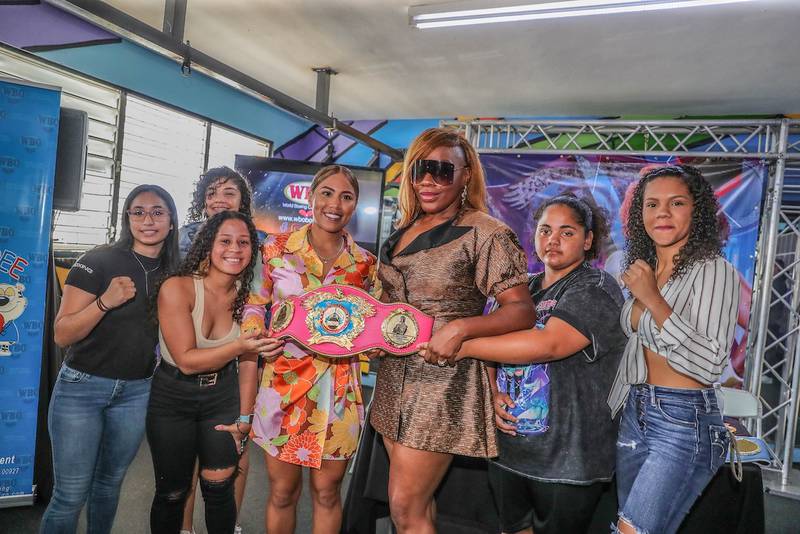 Rodeada de campeones y prometedoras boxeadoras aficionadas de Puerto Rico, la primera campeona mundial indiscutible en la historia del boxeo femenino en el peso súper mediano (168 libras), Franchón Crews-Dezurn, no pudo contener la emoción al recibir una correa personalizada de la Organización Mundial de Boxeo (OMB) conmemorando su histórico logro. Crews-Dezurn recibió su nueva faja hoy, durante una actividad en el gimnasio de Monterrey Boxing Academy, en Bayamón.