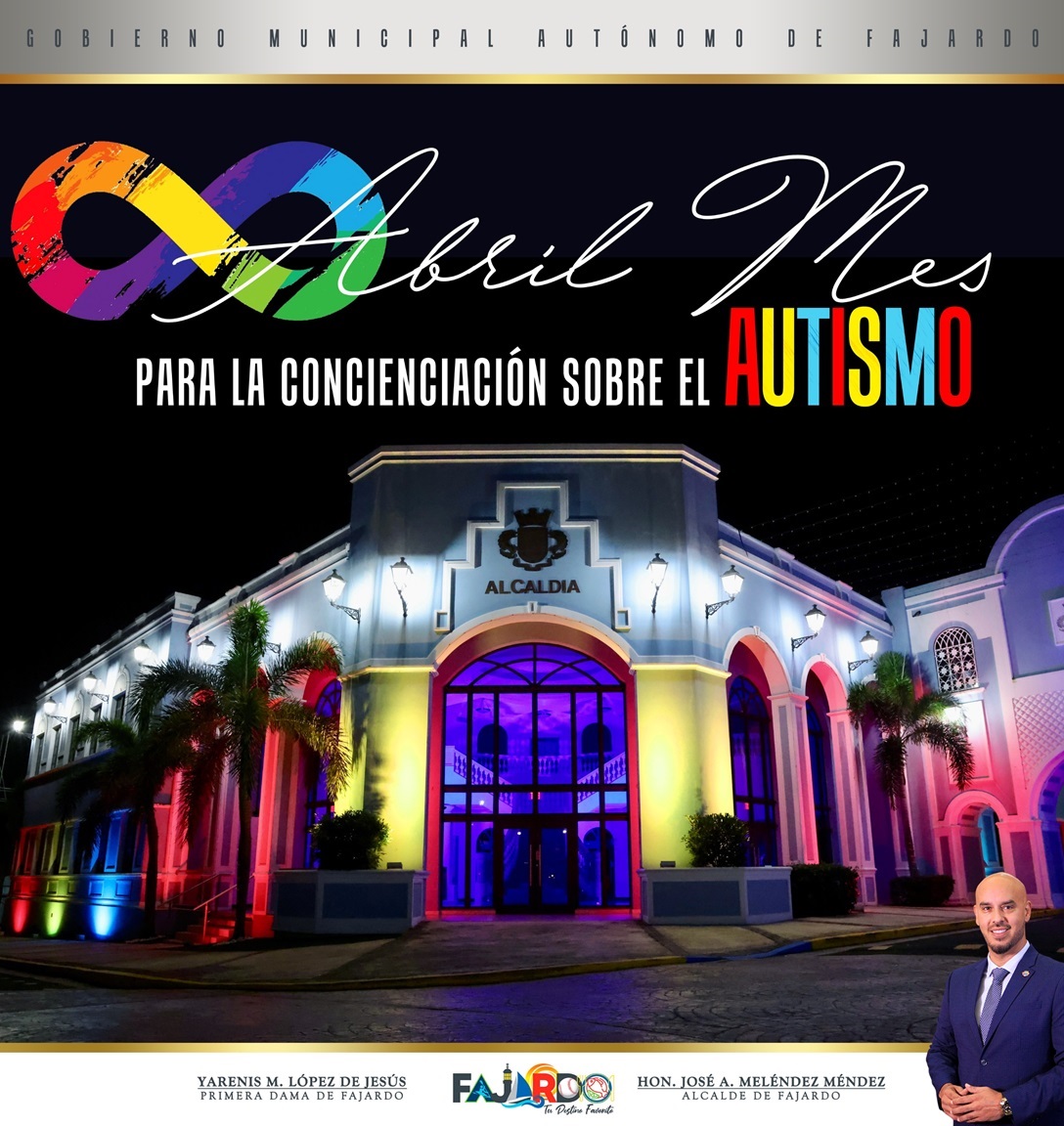 Como parte del inicio del Mes de la Concienciación sobre el Autismo, el Gobierno Municipal Autónomo de Fajardo, liderado por su alcalde, el Hon. José Aníbal “Joey” Meléndez, llevó a cabo la iluminación de la Casa Alcaldía con los colores representativos de esta causa, en un gesto simbólico de solidaridad, inclusión y apoyo a las personas dentro del espectro autista y sus familias.