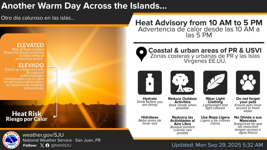 Vigente una advertencia de calor para la costa y zonas urbanas de Puerto Rico Notiséis 360 08/10/2025
