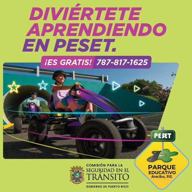 La Comisión para la Seguridad en el Tránsito (CST) invita a los directores de las escuelas públicas y privadas a coordinar, vía teléfono o email, una visita al Parque Educativo Seguridad en el Tránsito (PESET) es el único en todo PR y el acceso al mismo es gratis. El parque tiene como propósito educar a los visitantes sobre el conocimiento y entendimiento de la Ley 22-2000 mejor conocida como Ley de Vehículos y Tránsito de Puerto Rico, con el fin de fortalecer la educación sobre la seguridad vial en el país.