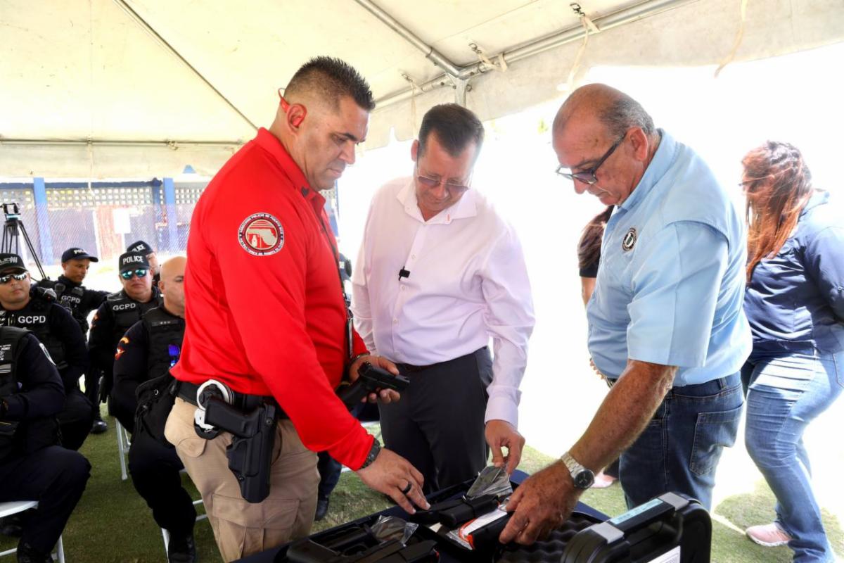 El alcalde de Guaynabo, Edward O’Neill Rosa, y el comisionado de la Policía Municipal, Coronel Jorge Hernández Peña, anunciaron hoy la distribución de nuevas armas de fuego para los policías municipales, como parte de un plan de modernización del equipo táctico de la Policía Municipal de Guaynabo.