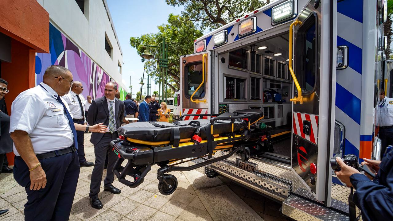 El comisionado del NCEM, Abner Gómez Cortés, entregó cuatro ambulancias especiales con capacidad para pacientes de obesidad mórbida, conocidas como bariátricas, con una inversión de $1,279,972 de fondos estatales. Las mismas se asignaron para las regiones de San Juan, Aguadilla, Arecibo y Mayagüez. También entregaron tres guaguas de pasajeros que sumaron $170,988 y estarán en las regiones de Ponce, Mayagüez y Arecibo.