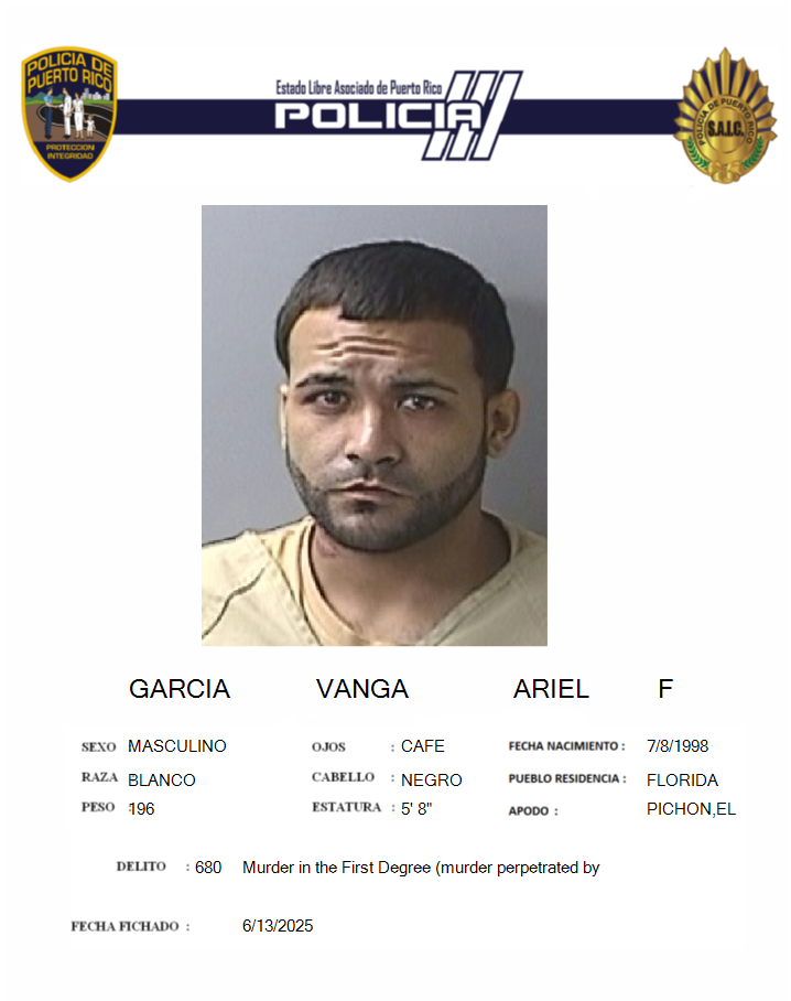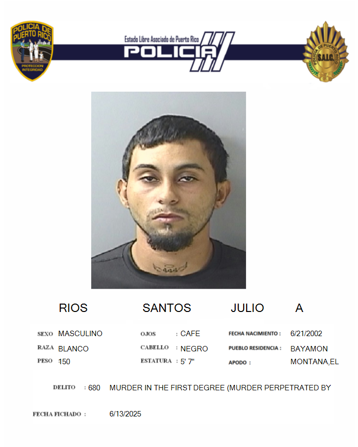 Agentes adscritos a la División de Homicidios del área de Aguadilla llevaron a cabo una investigación que culminó en la tarde de ayer viernes con la radicación de nueve cargos por asesinato en primer grado, conspiración, uso de disfraz en la comisión de un delito, riesgo a la seguridad al disparar en un lugar público o abierto al público, destrucción de prueba y cuatro cargos por violación a la Ley de Armas. Estos incluyen portación, transporte o uso de armas de fuego sin licencia, disparar o apuntar un arma, posesión de municiones y uso de armas automáticas, alteradas o ilegales. Los cargos fueron radicados por la fiscalía contra Josean F. Ortiz Quiñones, de 22 años, residente del municipio de Manatí; Ariel F. García Vanga, alias Pichón, de 26 años, residente del municipio de Florida; José A. Trinidad Trinidad, alias Antonio, de 32 años, residente del municipio de Manatí; Julio A. Ríos Santos, alias Montana, de 22 años, residente del municipio de Bayamón; y Jesús Román Marrero, alias Chupi, de 28 años, residente del municipio de Quebradillas.