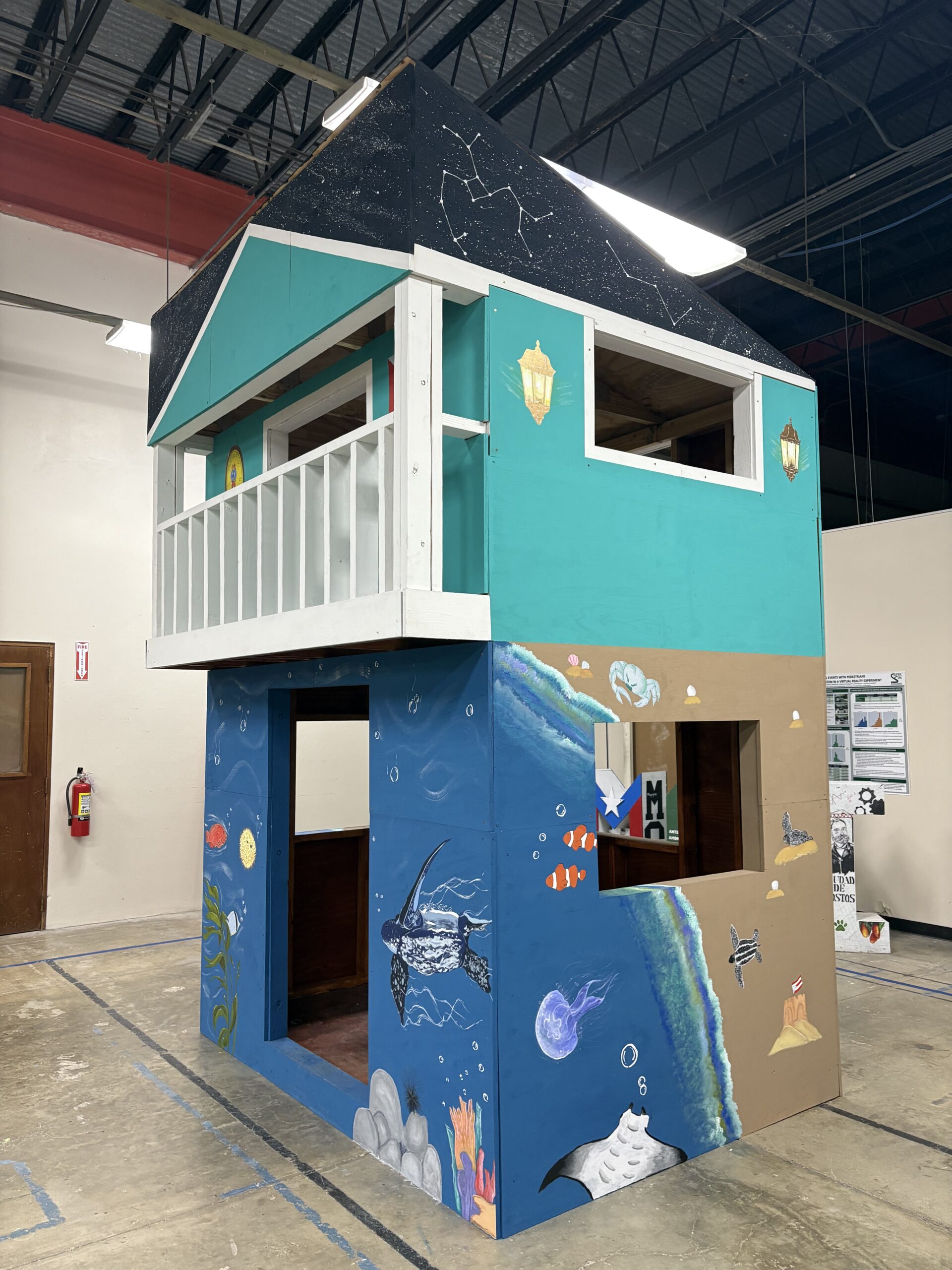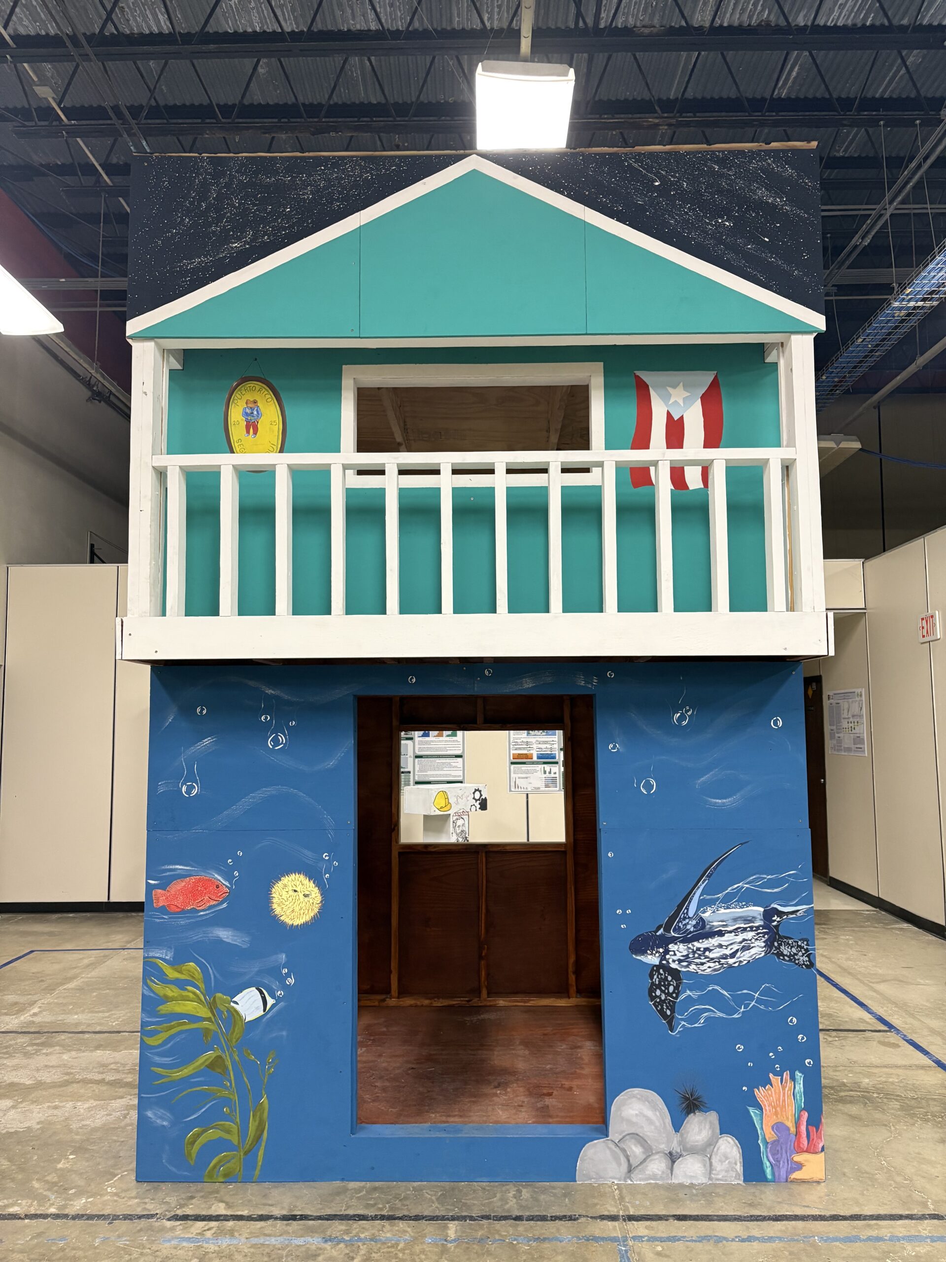 “Nos enfocamos en este sector de Lajas por las bahías bioluminiscentes, ya que en Puerto Rico tenemos tres, de apenas cinco que existen en el mundo entero. También mencionamos al tinglar, que es una de las especies autóctonas de la isla. Además, le integramos un balcón en el segundo piso, que resultó retante en términos de construcción, pero para eso estamos, para superar nuevos desafíos. En ese nivel superior, incluimos al sapo concho, también nativo de nuestro país y a nuestra bandera”, explicó, por su parte, Daisha G. Pérez Mercado, líder del departamento de Documents & Marketing y también alumna de INCI.
