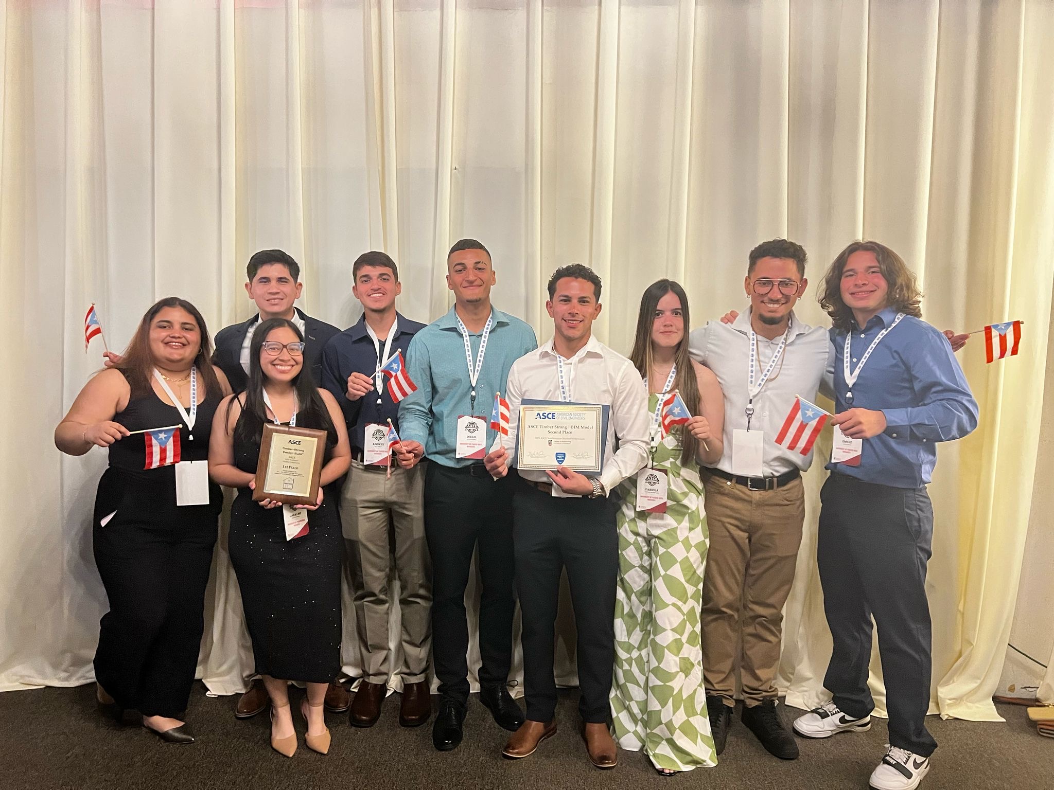 Un equipo de estudiantes del Colegio de Ingeniería del Recinto Universitario de Mayagüez (RUM) obtuvo el primer lugar en la competencia Timber Strong Design Build (TSDB), evento que se llevó a cabo durante el ASCE Southeast Student Symposium 2025. El reto constaba en diseñar, analizar, construir y ensamblar una estructura de dos niveles completamente realizada en madera a escala 1:1, que cumpliera con criterios de diseño estructural y sostenibilidad, así como resaltar elementos estéticos y llamativos.