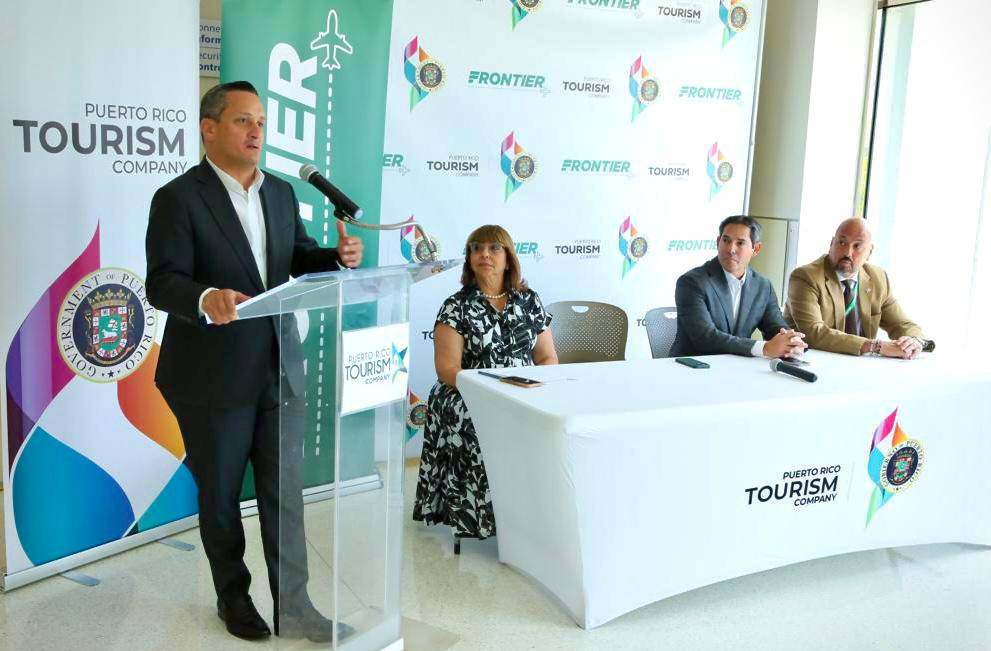 Así lo informaron hoy el director ejecutivo de la Compañía de Turismo de Puerto Rico (CTPR), Carlos Mercado Santiago, el principal oficial ejecutivo de Aerostar, Jorge Hernández, el gerente de Ventas Internacionales de Frontier, Alfredo González, así como el principal oficial de estrategias del DMO, Edward Zayas.