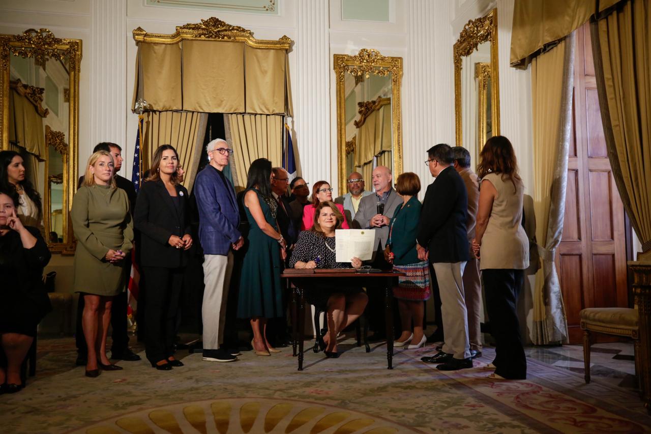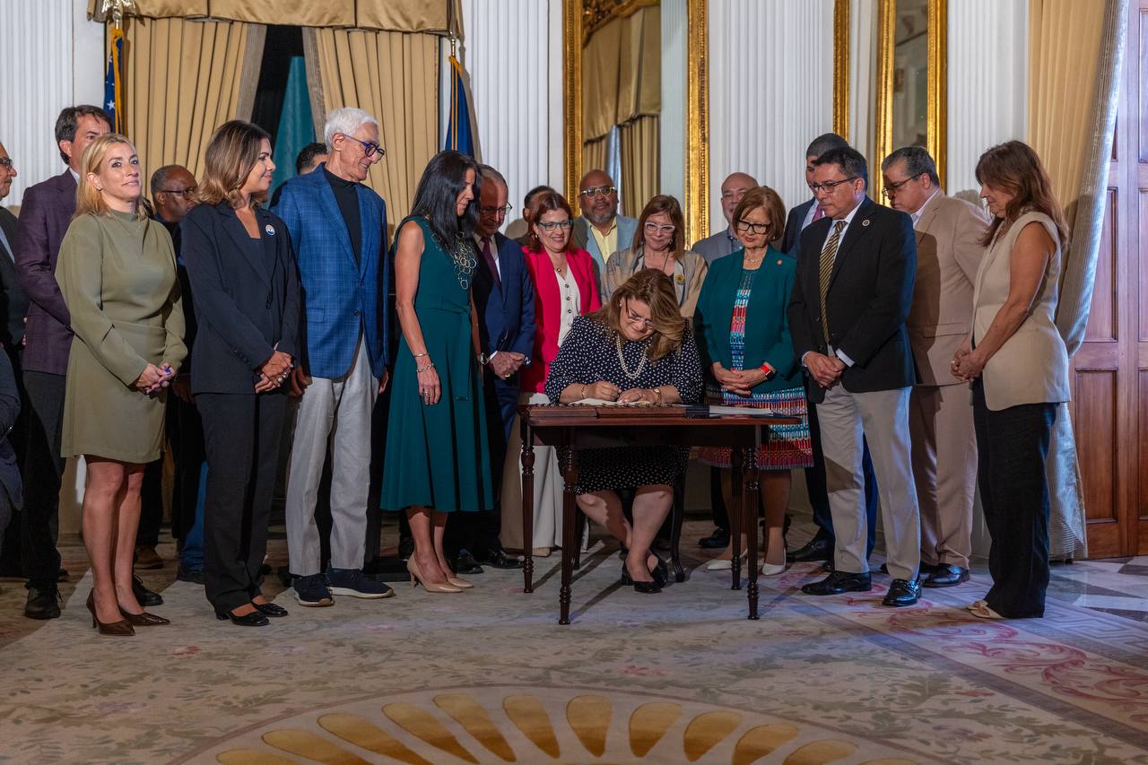 Estuvieron en la firma de la medida el presidente de la Cámara de Representantes Carlos “Johnny” Méndez Núñez, la presidenta Comisión de Hacienda, Presupuesto y PROMESA del Senado Migdalia Padilla Alvelo y el presidente de la Comisión de Hacienda de la Cámara de Representantes Eddie Charbonier Chinea.