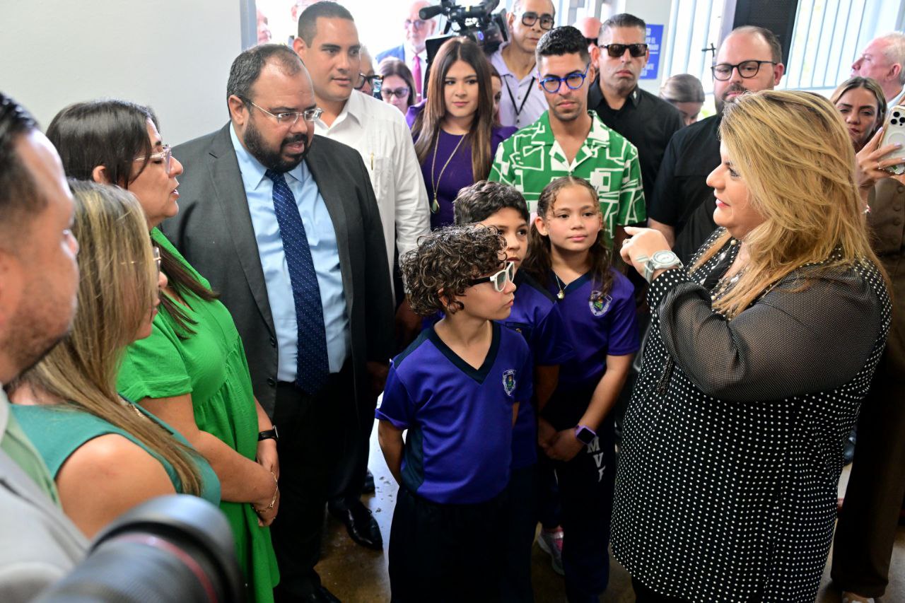 Durante su recorrido por el plantel, la gobernadora acompañada por el secretario de Educación Eliezer Ramos Parés, el director de la Autoridad de Edificios Públicos, Félix Lassalle, el secretario de Salud Víctor Ramos Otero, el director del programa Medicaid y de ASES (Plan Vital) Carlos Santiago.