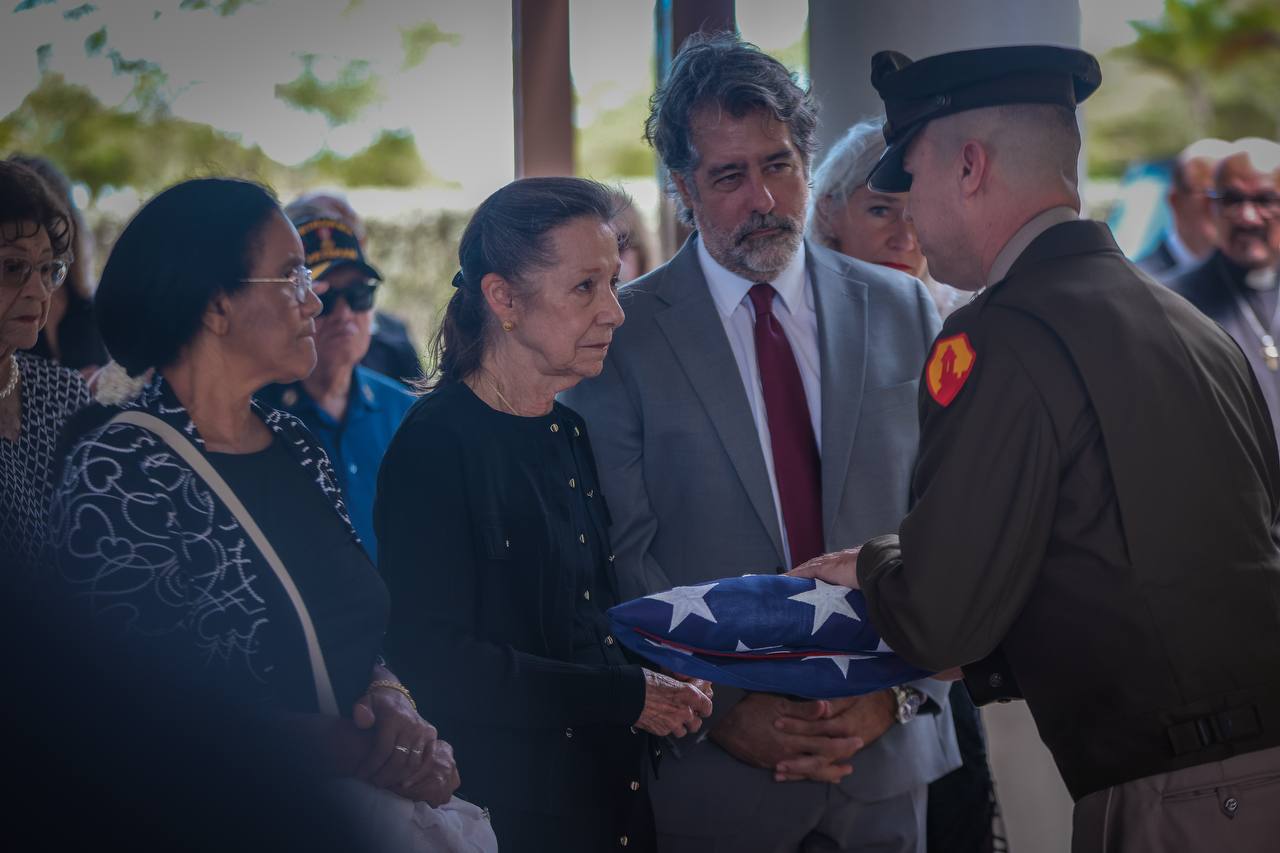 Hoy, en el funeral del General representó a la gobernadora el Teniente Coronel Retirado José Olmos, quien es su asesor en asuntos militares y de veteranos, y el General Arturo Garffer, secretario de Seguridad Pública; estuvo a su vez el procurador de Veteranos Agustín Montañez.