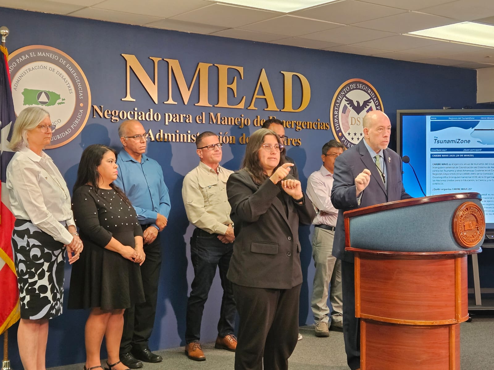 “Exhortamos a toda la población y entidades a que participen del CARIBE WAVE 2025, que se orienten, que conozcan qué hacer y las rutas de desalojo de su comunidad. En Puerto Rico, muchos nos preparamos para la temporada de huracanes y pensamos que un tsunami no va a pasar. Apenas el 8 de febrero tuvimos una advertencia de tsunami y eso nos recordó que no podemos bajar la guardia y pensar que eso no va a pasar. Tenemos que estar preparados para cualquier tipo de emergencia, tanto a nivel de gobierno como de la comunidad”, destacó González Colón.