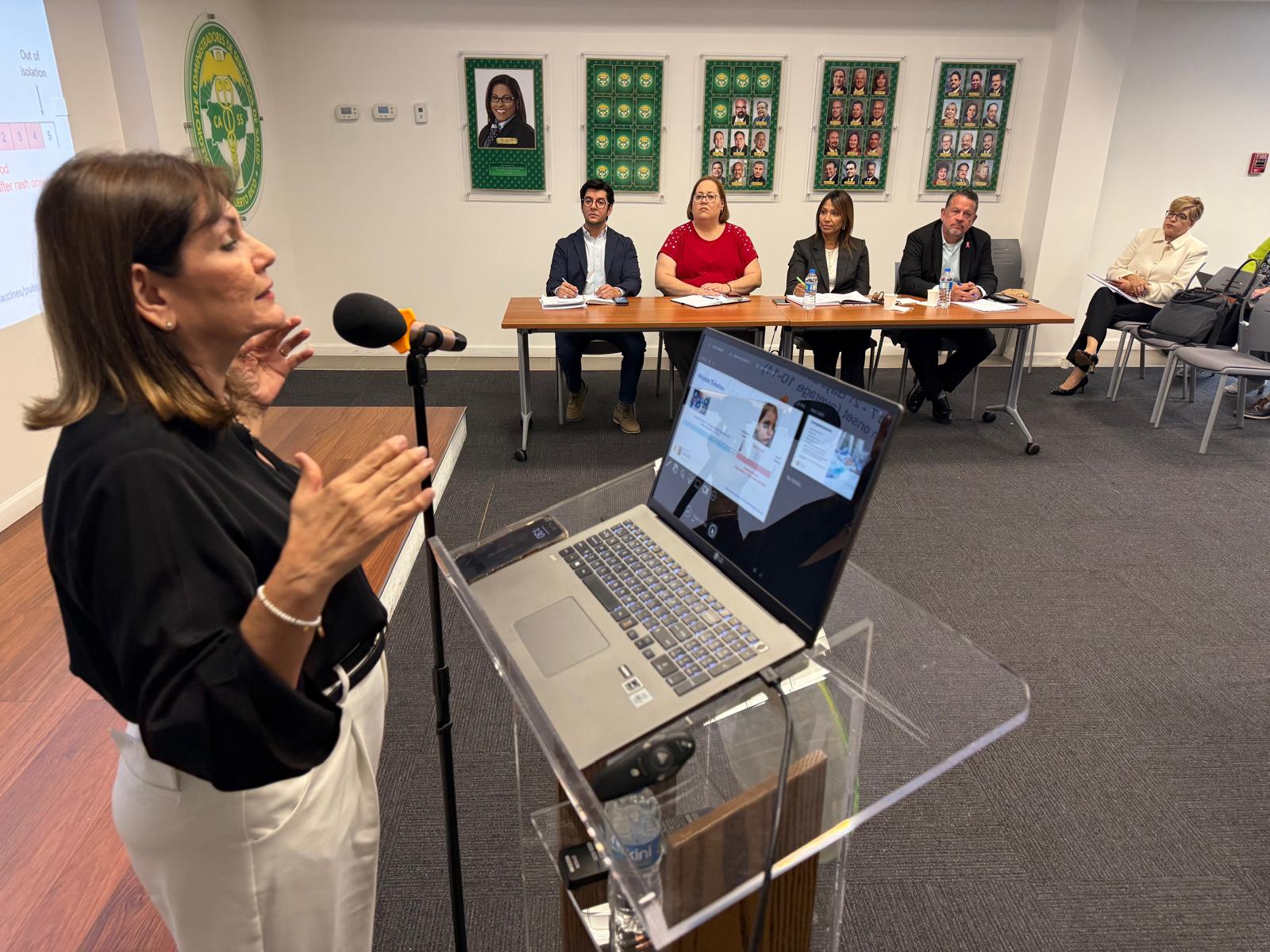 En la mesa estuvo presente la presidenta de la Sociedad Puertorriqueña de Pediatría (SPP), Dra. Mariely Agosto; la Principal Oficial Médico del Departamento de Salud, Dra. Iris Cardona; y la Principal Epidemióloga del Departamento de Salud, Miriam Ramos.
