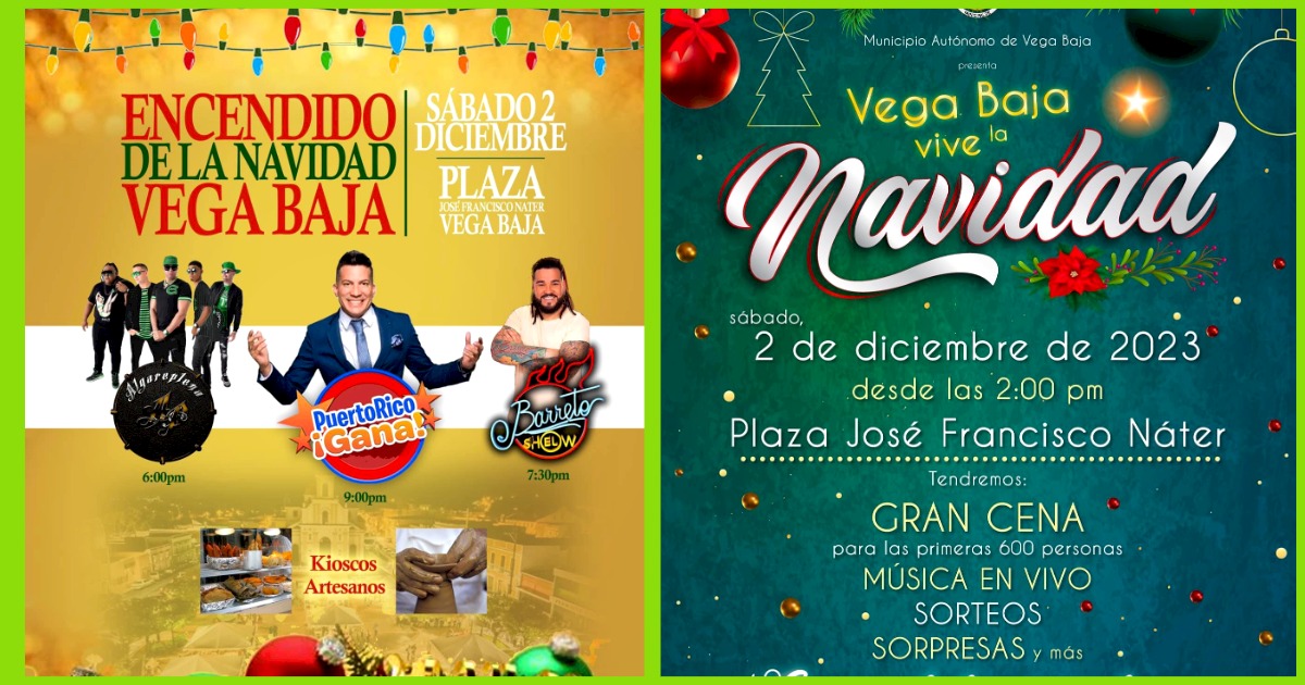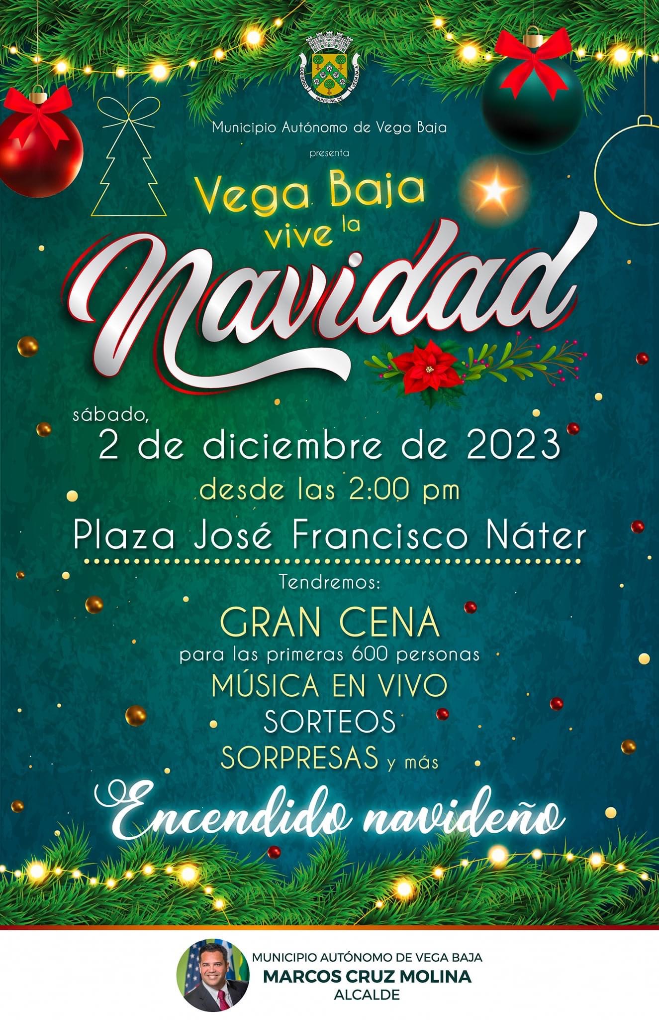 (Vega Baja – 28 de noviembre de 2023) – El encendido Navideño 2023, junto al evento anual “Vega Baja VIVE la Navidad», regresa a la Plaza Pública José Francisco Náter este sábado, 2 de diciembre, desde las 2:00 pm. En este momento lleno de luz y alegría, la comunidad de Vega Baja se reunirá para celebrar el inicio de la Navidad, que incluirá música en vivo, comida, sorteos, y más.