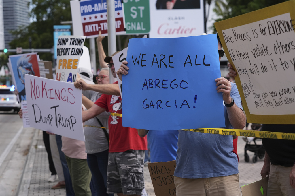 Los organizadores dicen que están protestando por lo que llaman violaciones de los derechos civiles y constitucionales de Trump, incluidos los esfuerzos para deportar a numerosos inmigrantes y reducir el gobierno federal despidiendo a miles de trabajadores gubernamentales y cerrando efectivamente agencias enteras.