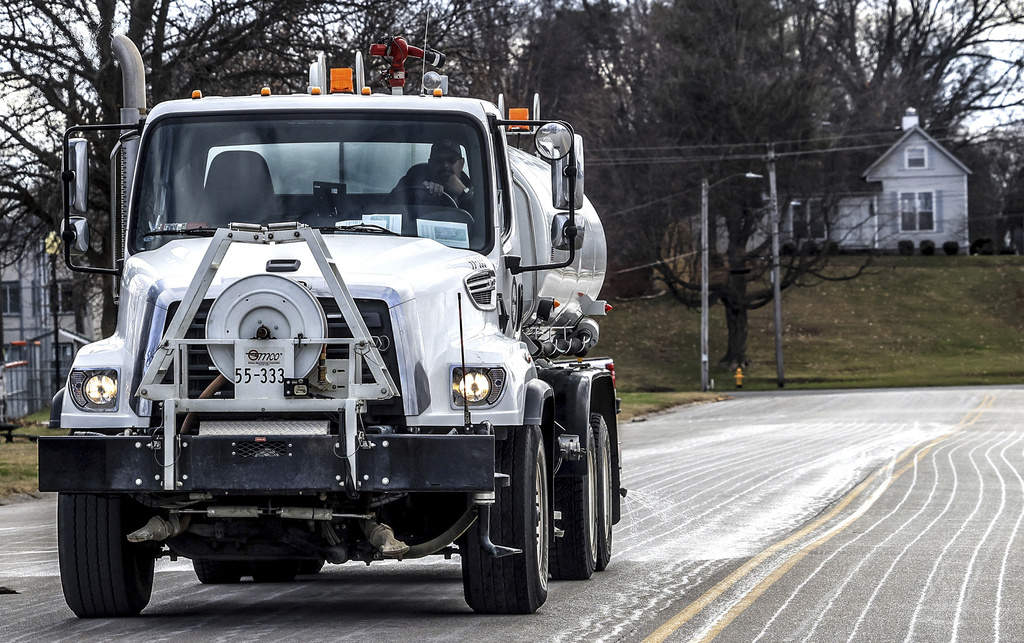 ARCHIVO - Steve Beckett, del departamento de vialidades de Owensboro, Kentucky, rocía una solución salina en la avenida Hickman en preparación para la nieve y el hielo que se pronostican para el fin de semana, el vienes 3 de enero de 2025, en Owensboro, Kenticky. (Greg Eans/The Messenger-Inquirer vía AP, Archivo)