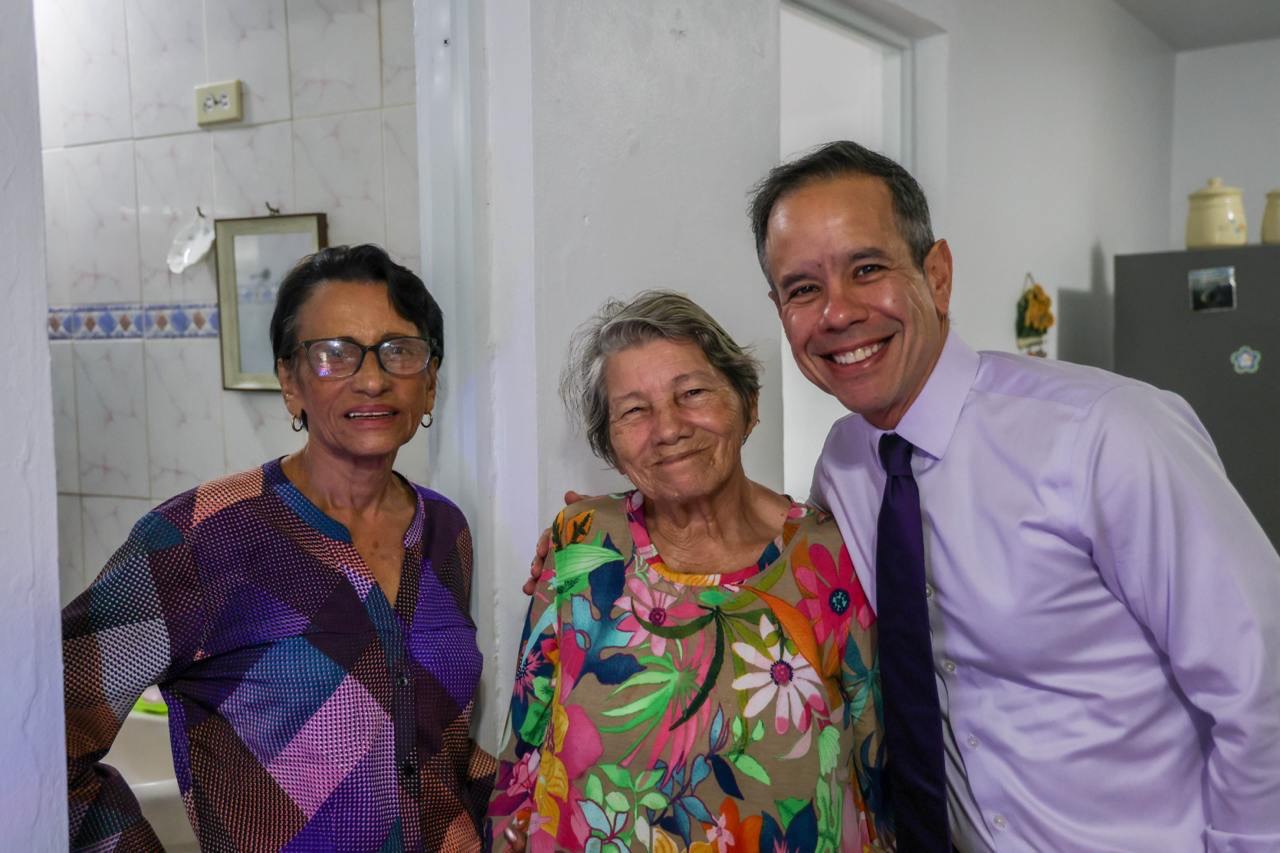 Los residentes Félix Cruz Cruz, de la Urbanización Los Pinos; Carmen González Rivera, de la Urbanización San José, y Gloria Rodríguez Calderón, de Caimito Alto, recibieron las llaves de sus casas renovadas a manos del ejecutivo capitalino, quien estuvo a cargo de la entrega.