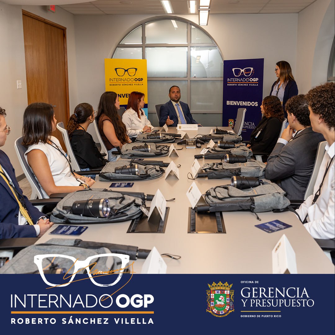 El Director de la Oficina de Gerencia y Presupuesto (OGP), Orlando C. Rivera Berríos, dio la bienvenida a un grupo de estudiantes de la Universidad de Puerto Rico y la Universidad del Sagrado Corazón que forman parte del Internado Roberto Sánchez Vilella, un programa del Gobierno de Puerto Rico que brinda una experiencia real de trabajo a jóvenes universitarios. Esto en cumplimiento con el Plan de Gobierno de la Gobernadora, Jenniffer González Colón, que establece como una de sus prioridades atender y fomentar el desarrollo profesional de las próximas generaciones.