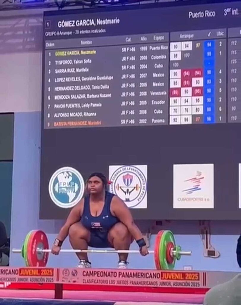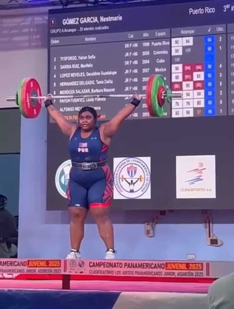 Gómez que pertenece a la liga de Caguas estableció tres marcas nacionales en su participación. En arranque mejoró a 97 kg, 125 en envión y 222 en total.