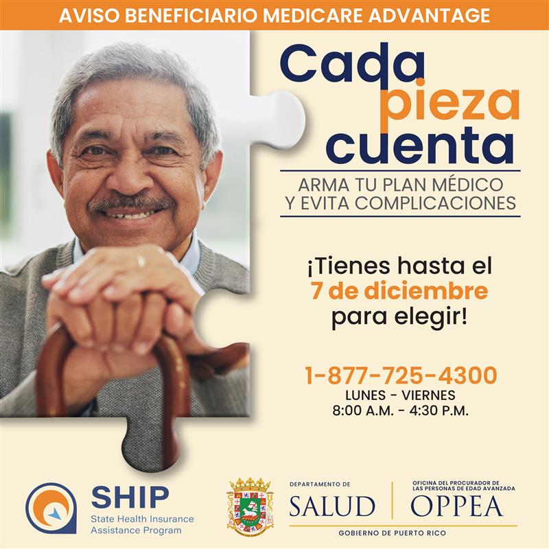 Para orientación, las personas pueden comunicarse con el Programa SHIP al 1-877-725-4300, 1-800-981-0056, 1-800-981-7735 o al (787) 721-6121, de lunes a viernes, de ocho de la mañana a cuatro y treinta de la tarde.