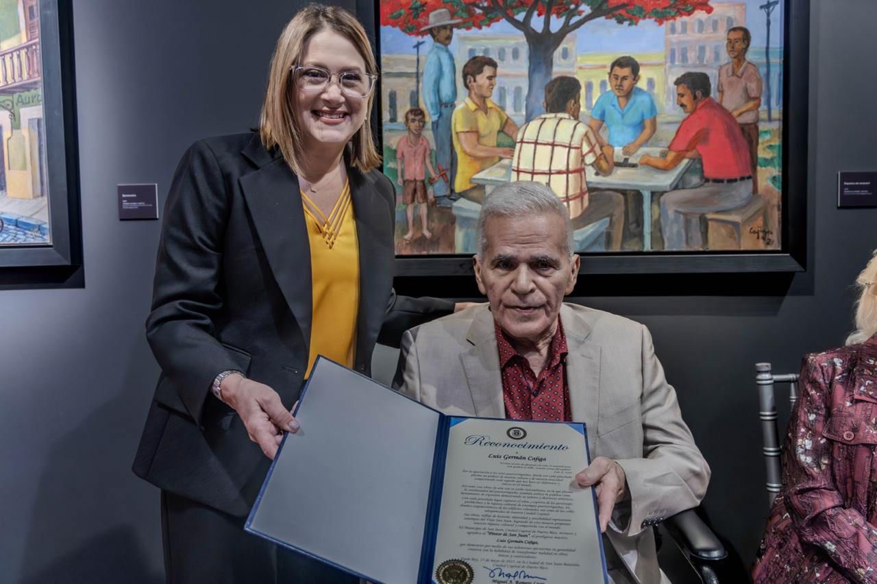 “La sensibilidad, el talento y amor por San Juan que don Luis Germán Cajiga supo plasmar en cada una de sus piezas merecen el mayor de los honores. Celebramos su legado, no solo como artista, sino como ser humano comprometido con su tierra”, sostuvo la primera dama de San Juan, Maritere González, al hacer entrega de un reconocimiento oficial a nombre del Municipio.