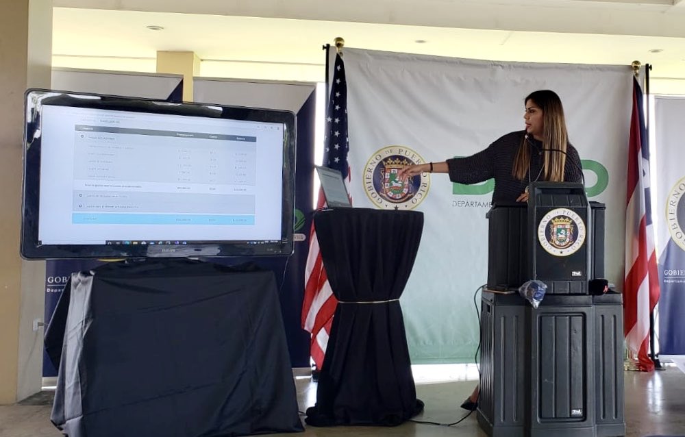 La secretaria del Departamento de Recreación y Deportes (DRD), Adriana Sánchez Parés, presentó el jueves, el portal ELMARCADOR© en donde las entidades deportivas e individuos que reciben fondos o donativos por parte del Departamento deben registrarse.