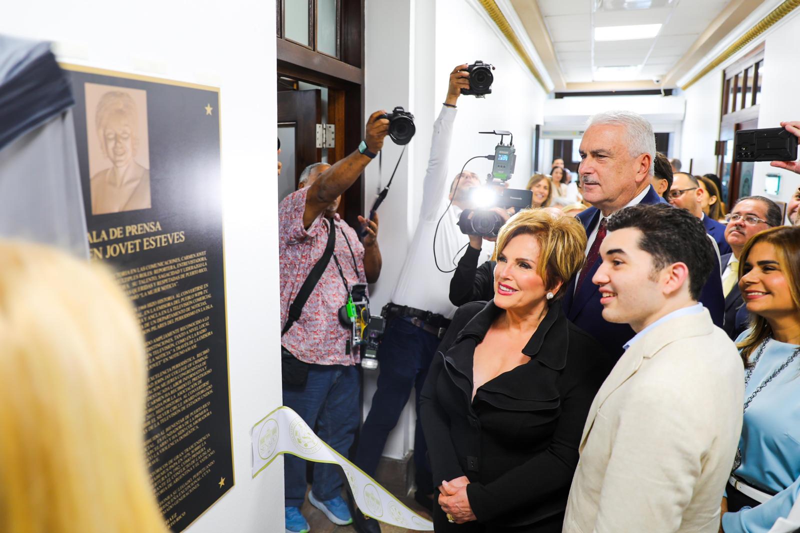 El Senado de Puerto Rico celebró hoy una ceremonia para designar su Sala de Prensa y Comunicaciones con el nombre de “Sala Carmen Jovet Esteves”, en honor a la reconocida periodista y pionera de los medios de comunicación en la Isla. Con esta distinción se reconoce su destacada trayectoria profesional y su compromiso con la libertad de prensa y la equidad social.