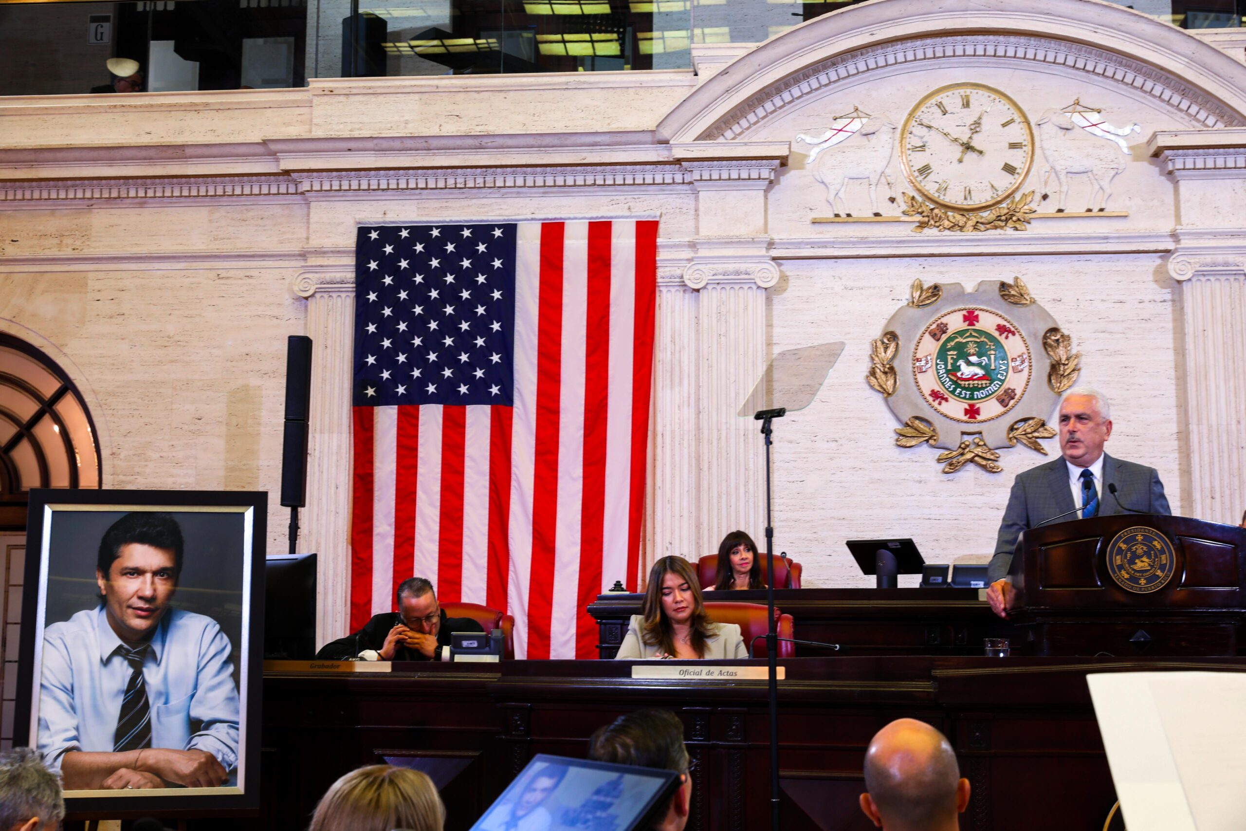 En un turno, el portavoz del Partido Popular Democrático, Luis Javier Hernández, expresó palabras de elogio para Medina. “Hoy nuestra delegación nos llena de orgullo este reconocimiento y nos honra profundamente porque estamos destacando una figura cuyo nombre se ha convertido en sinónimo de excelencia, visión y defensa de lo nuestro. Nada más y nada menos que Ángelo Medina. Hoy reconocemos a un hombre que no sólo ha sido gestor de carreras musicales legendarias, sino un arquitecto cultural que comprendió, antes que muchos, el poder transformador de los medios de comunicación, en especial de la televisión puertorriqueña”, dijo Hernández.