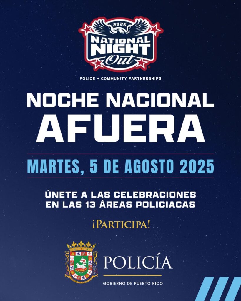 El superintendente de la Policía de Puerto Rico, Joseph González, exhortó hoy a toda la ciudadanía a participar activamente de la edición número 42 de la Noche Nacional Afuera (National Night Out), a celebrarse este próximo martes, 5 de agosto de 2025, en las trece (13) áreas policiacas de la Isla.