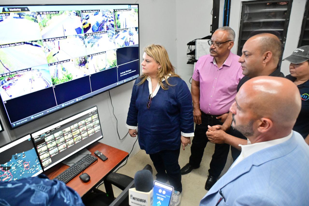 La gobernadora junto al alcalde y el superintendente de la Policía Joseph González inspeccionaron el cuartel municipal y discutieron asuntos relacionados a reforzar la seguridad.