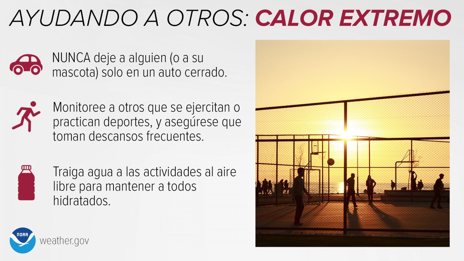 Ante esta advertencia de calor, la agencia meteorológica recomendó beber mucha agua, evitar actividades intensas durante la parte más caliente del día y usar ropa ligera, entre otros.