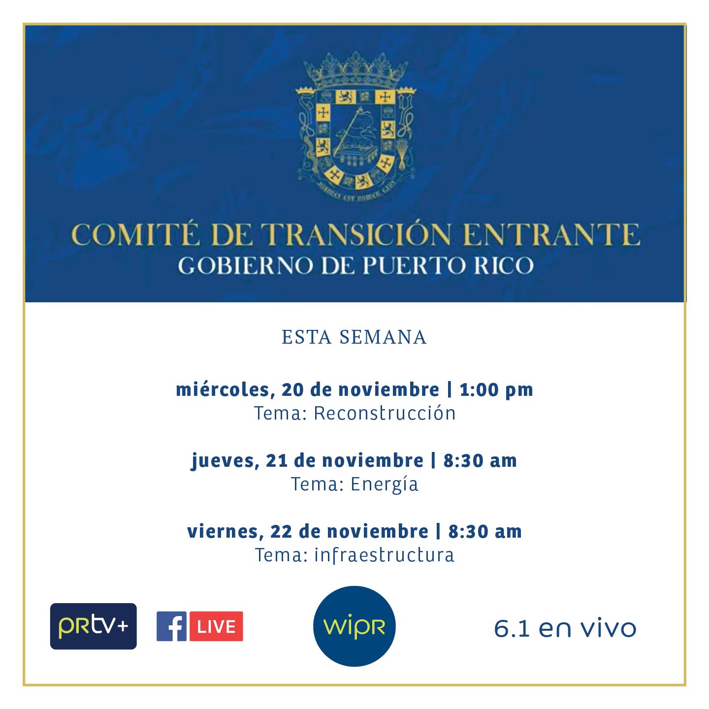 La Corporación para la Difusión Pública (WIPR) anunció el miércoles el inicio de la transmisión especial de las vistas de transición del Gobierno de Puerto Rico, disponible desde las 1:00 p.m. hasta las 5:00 p.m., y mañana de 8:30 a.m. a 5:00 p.m.