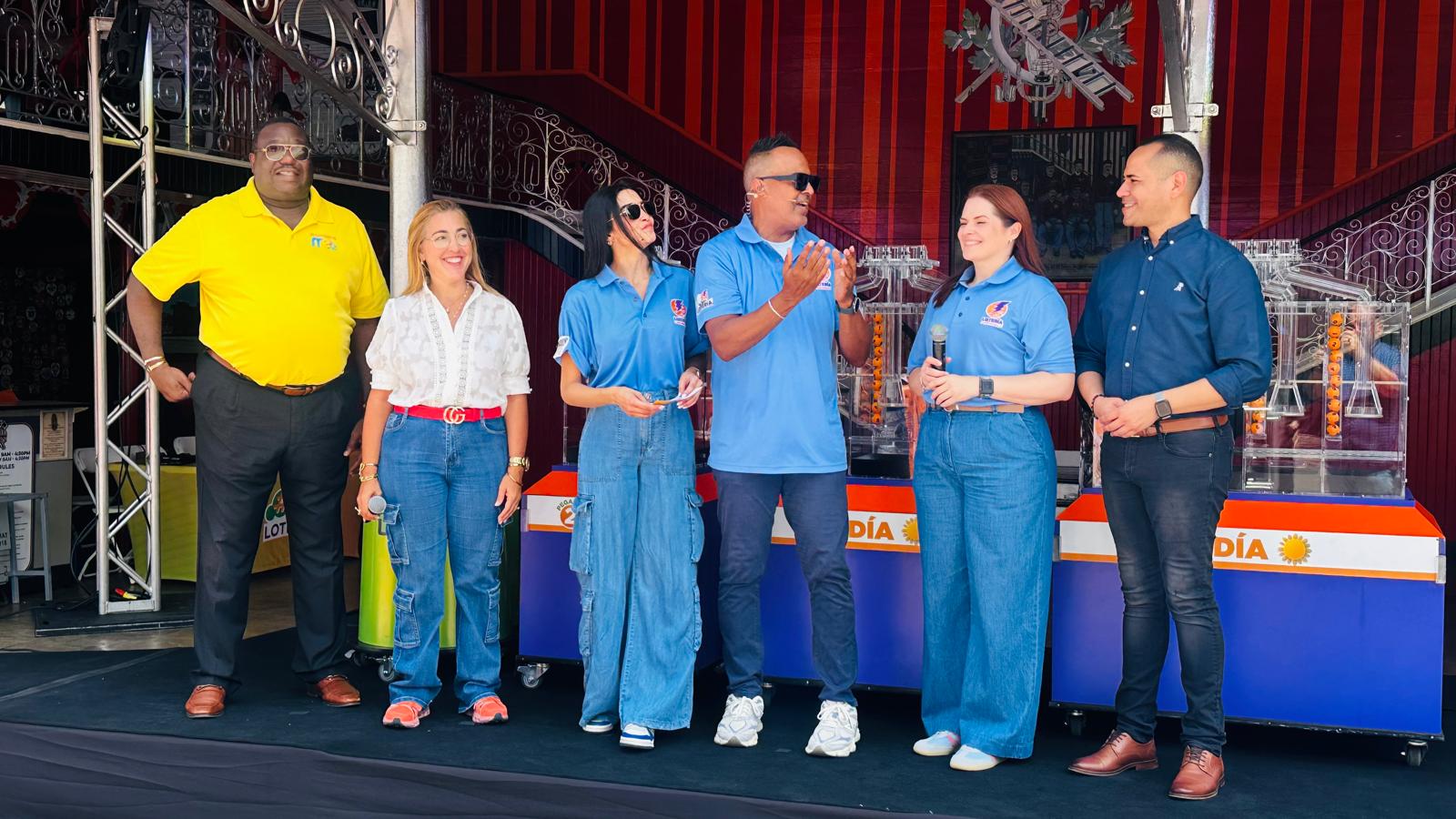 Ponce, Puerto Rico – La secretaria auxiliar del Negociado de la Lotería, Heidi Hernández Olivo; la alcaldesa del Municipio de Ponce Marlese Sifre; el presidente de la Corporación de Puerto Rico para la Difusión Pública (WIPR); y el talento del programa El Mediodía se unieron hoy a la celebración del 35 aniversario de la Lotería Electrónica con una colorida actividad en la Plaza Las Delicias y el Parque de Bombas en Ponce.