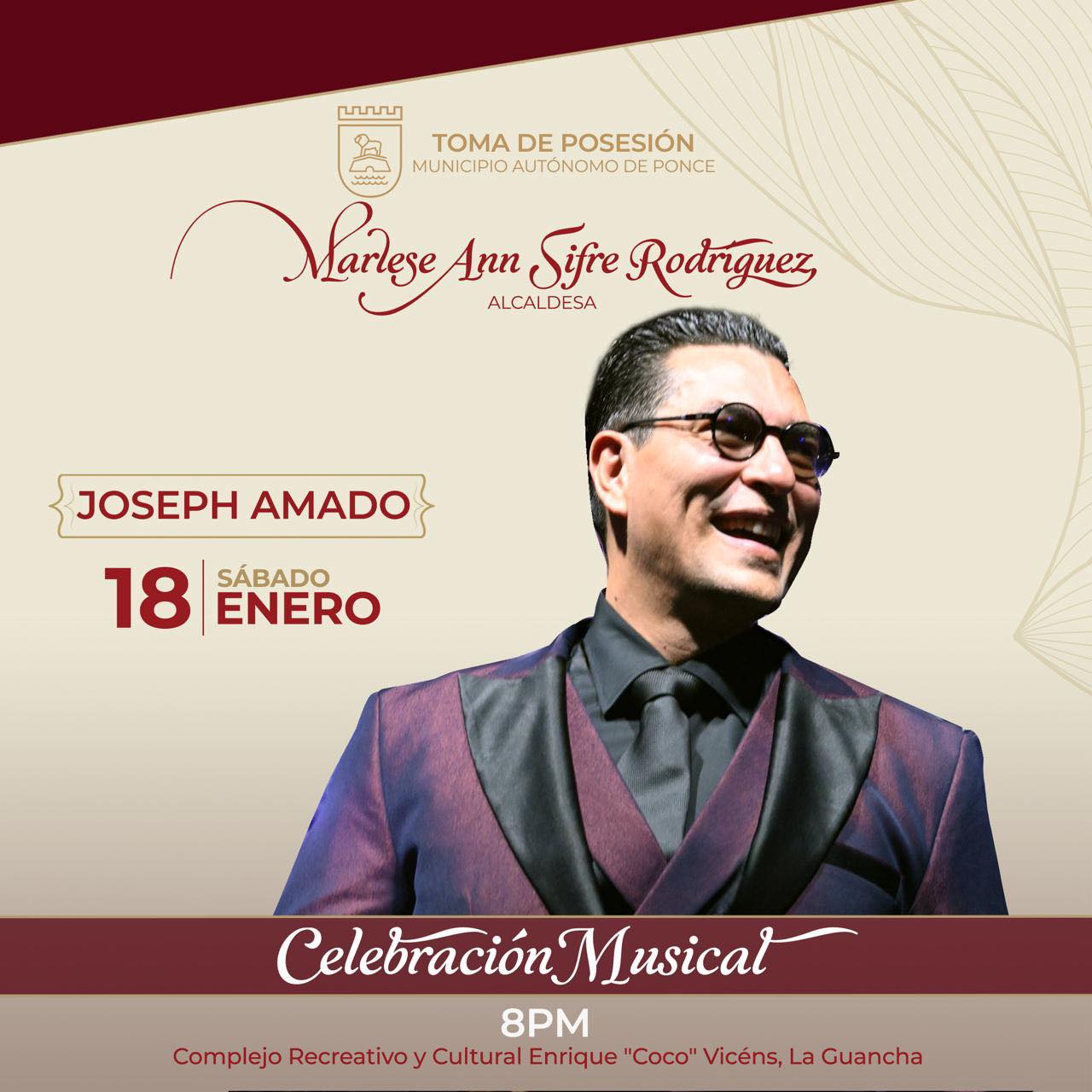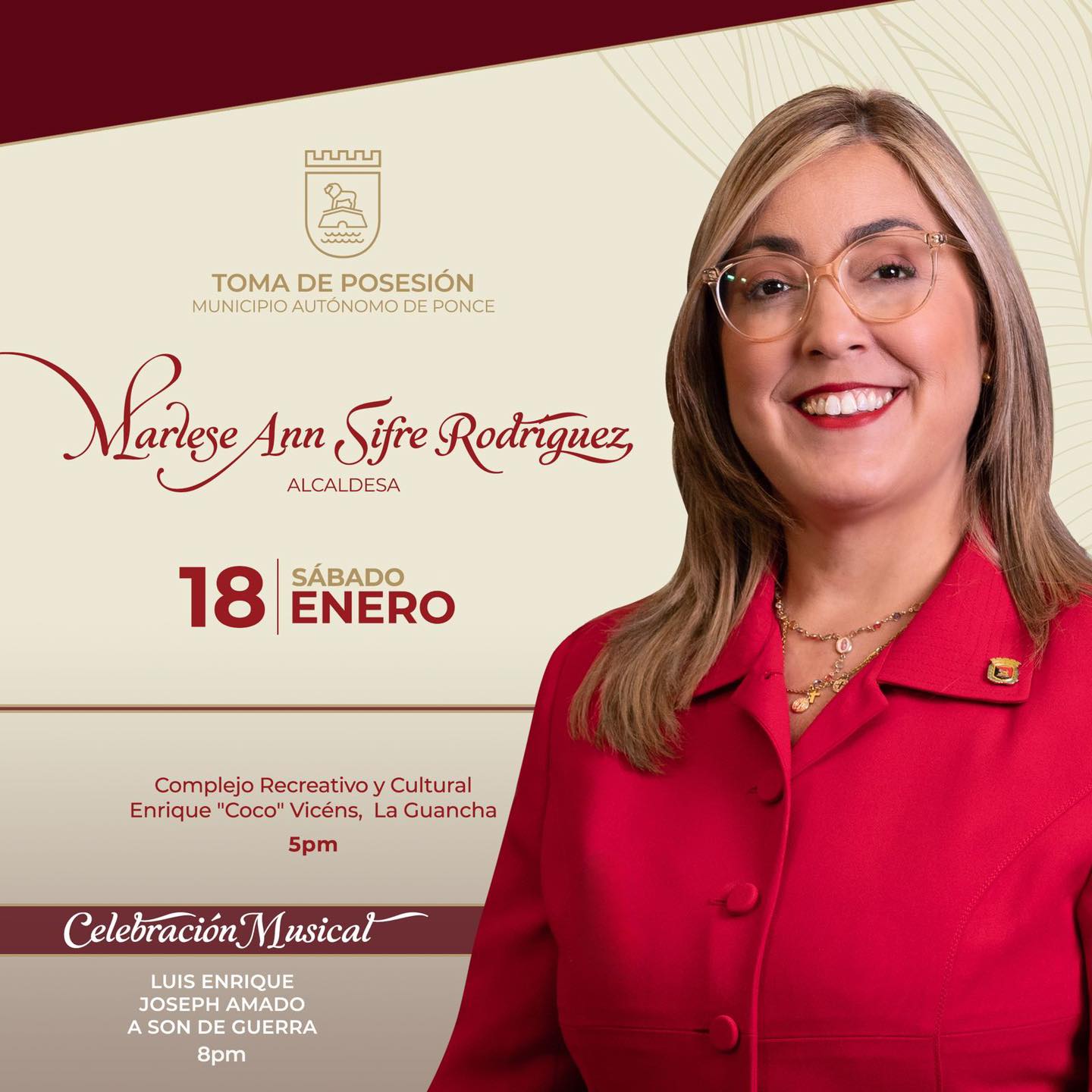 La toma de posesión se podrá ver en vivo por WIPR Canal 6, el app PRTV+, wipr.pr/envivo y las redes sociales del Municipio de Ponce.